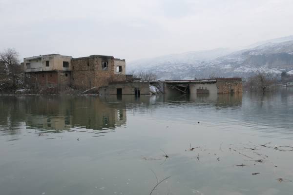 Sunmez Er, de 42 años, del pueblo de Organ, que se hundió hace un mes, dice: "Muchos pueblos se han hundido. No sabemos dónde. El Estado ha inundado nuestra tierra más fértil. Las tumbas de nuestras abuelas y abuelos se han inundado. Tuvimos que dejarlos allí. No esperamos nada del estado de todos modos, pero queremos nuestros derechos. El estado no ha cumplido ni una sola promesa hasta ahora".